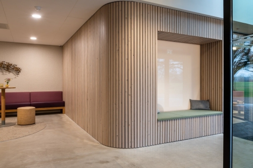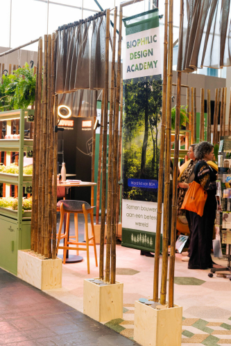 Compostboard is een gezond interieurproduct, 100% biobased. Het wordt lokaal gemaakt van vezels die binnen een straal van 150 km van de productielocatie als afval worden beschouwd. Met vlasvezels, hennep- en paprikaplantvezels is zelfs de lijm lokaal geproduceerd. Op onze stand was een wandpaneel met planten zichtbaar.